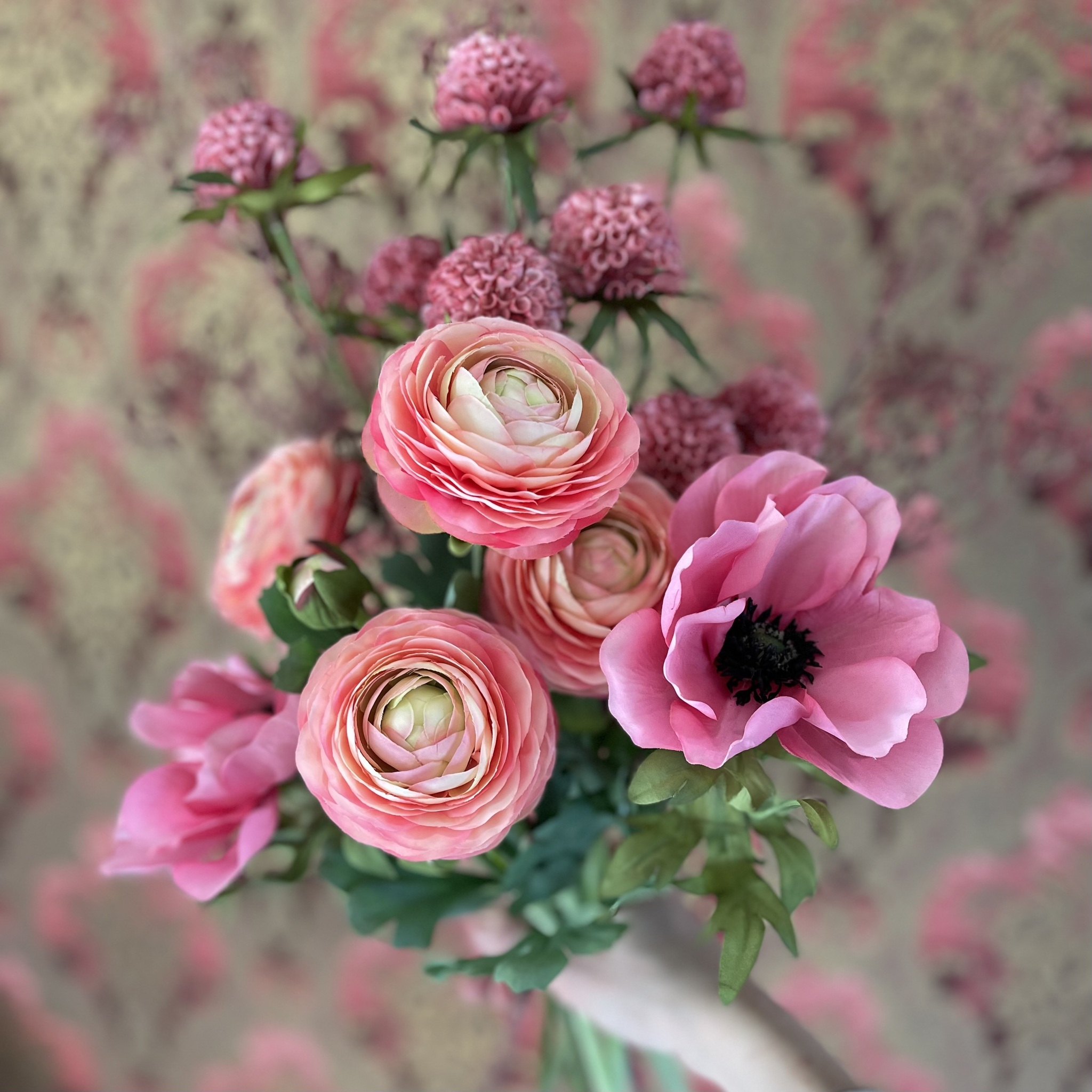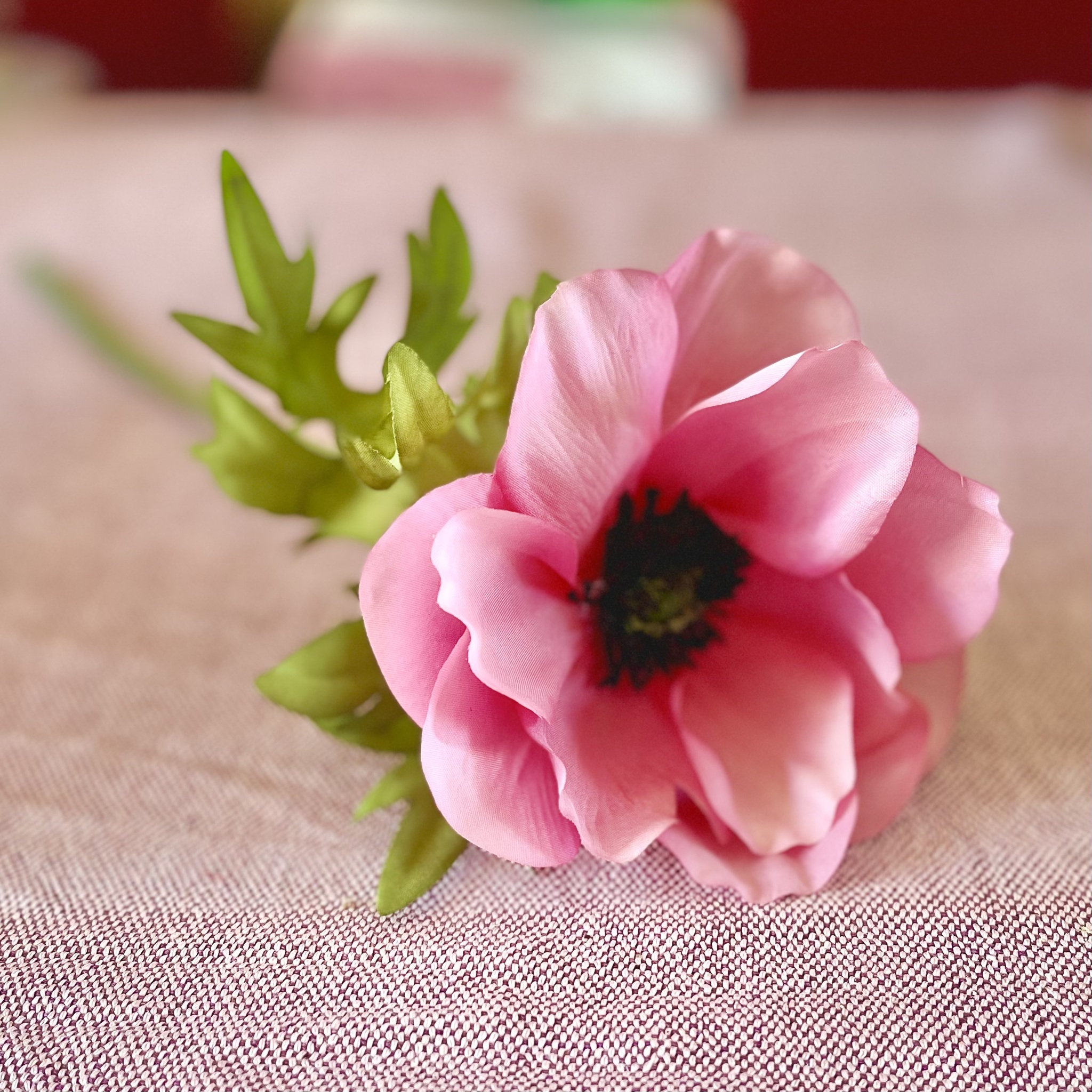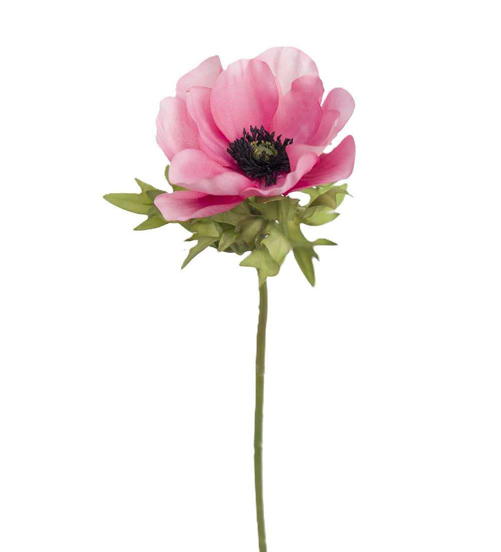 Konstgjord anemon i rosa av absolut högsta kvalitet. Bör en placeras i direkt solljus då produkten saknar UV-skydd och kan blekas. Höjd 43 cm.