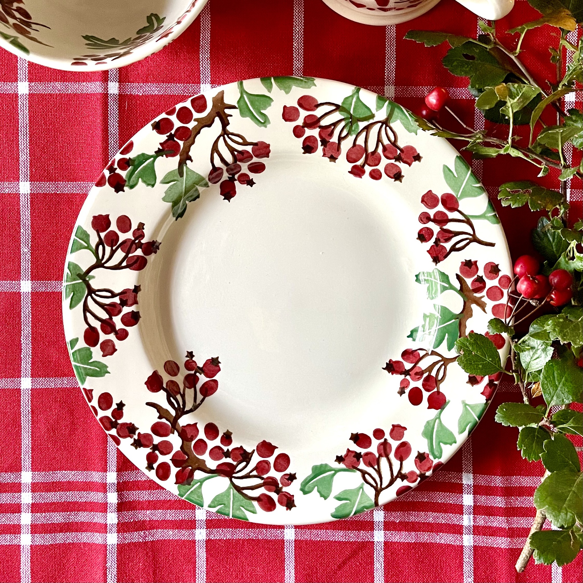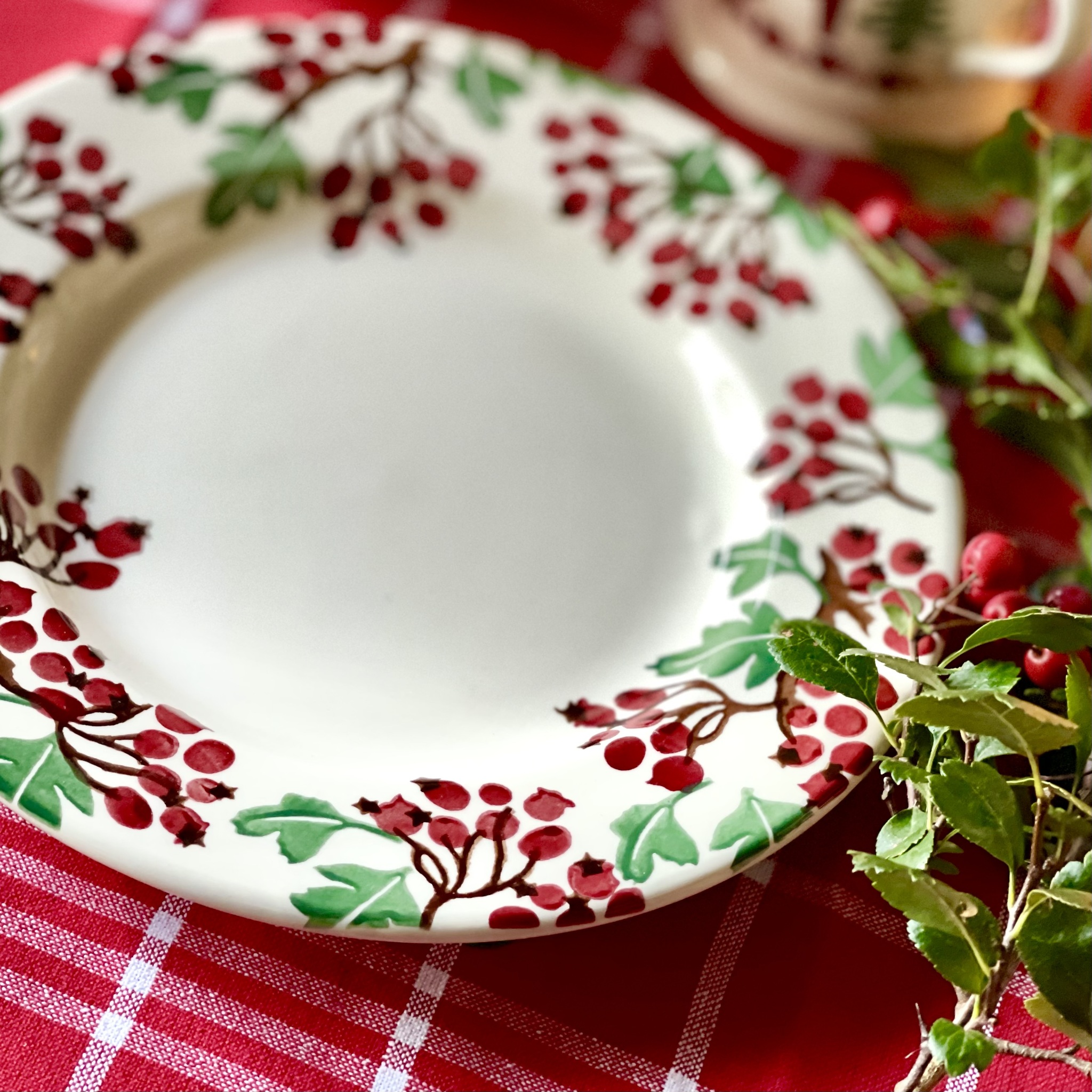 Vacker assiett av finaste porslin från Emma Bridgewater med mönstret ?Hawthorn Berries?. Tål maskindisk och micro. Diameter 22 cm.