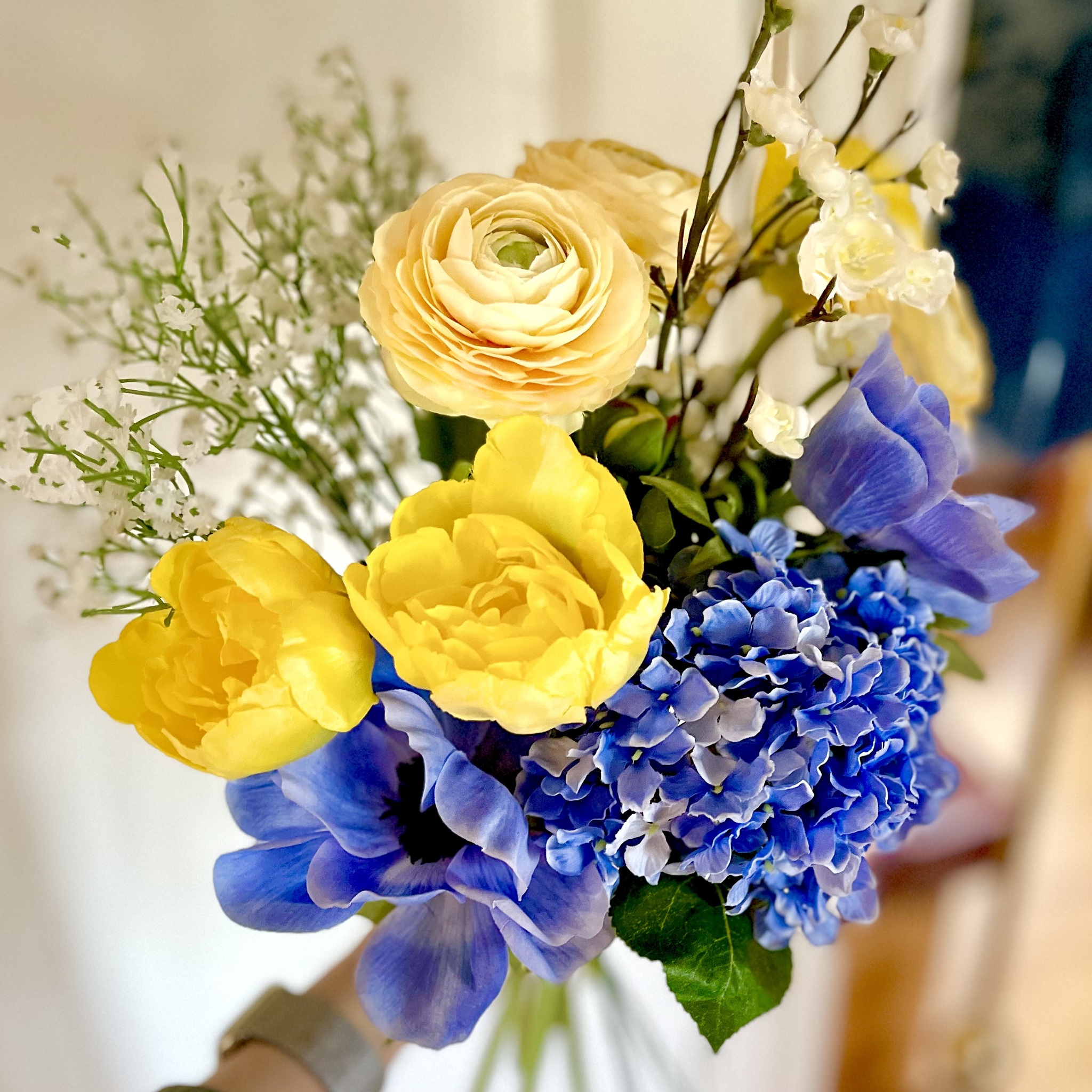 Fyllig, vacker och drömmig är denna konstgjorda blå hortensia av absolut högsta kvalitet. Höjd 40 cm, diameter 12 cm.