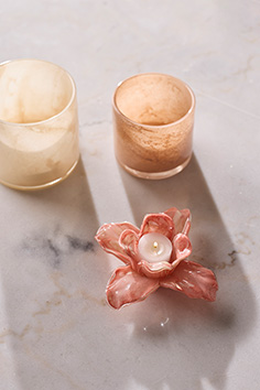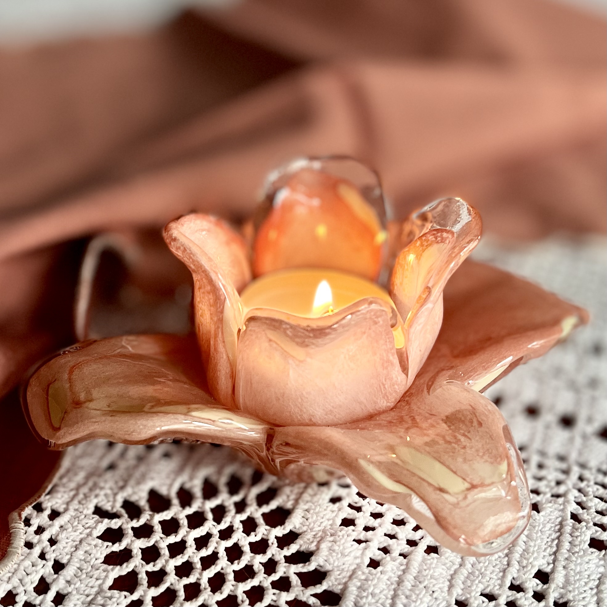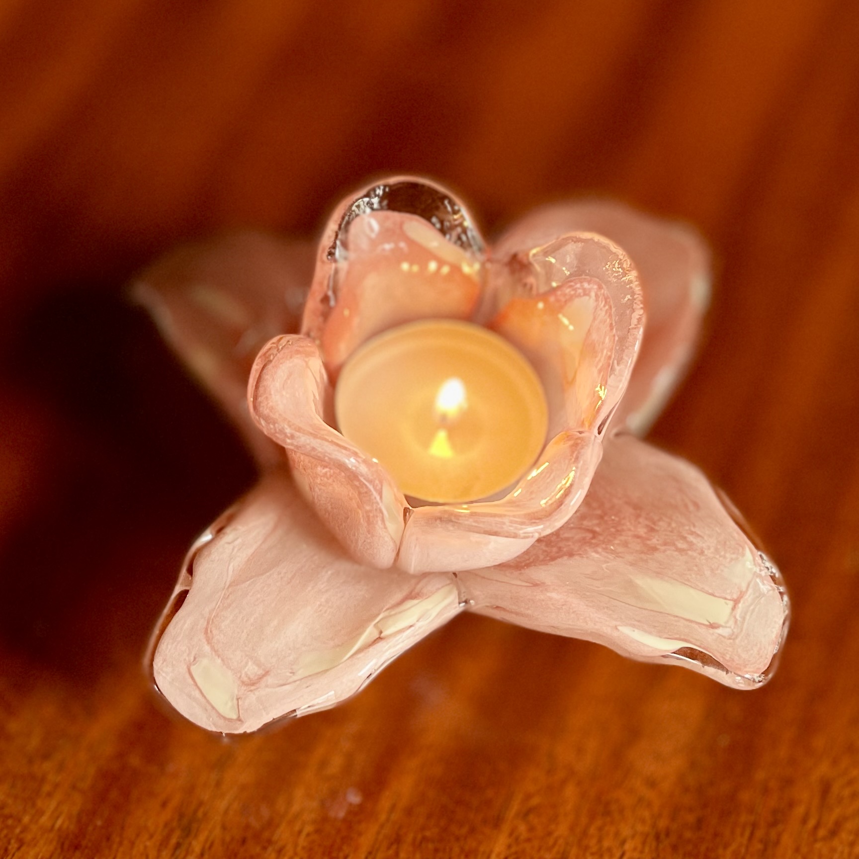 Nu blommar det! Ljuslykta av glas som garanterat drar blickarna till sig. Diameter 15 cm, höjd 8 cm.