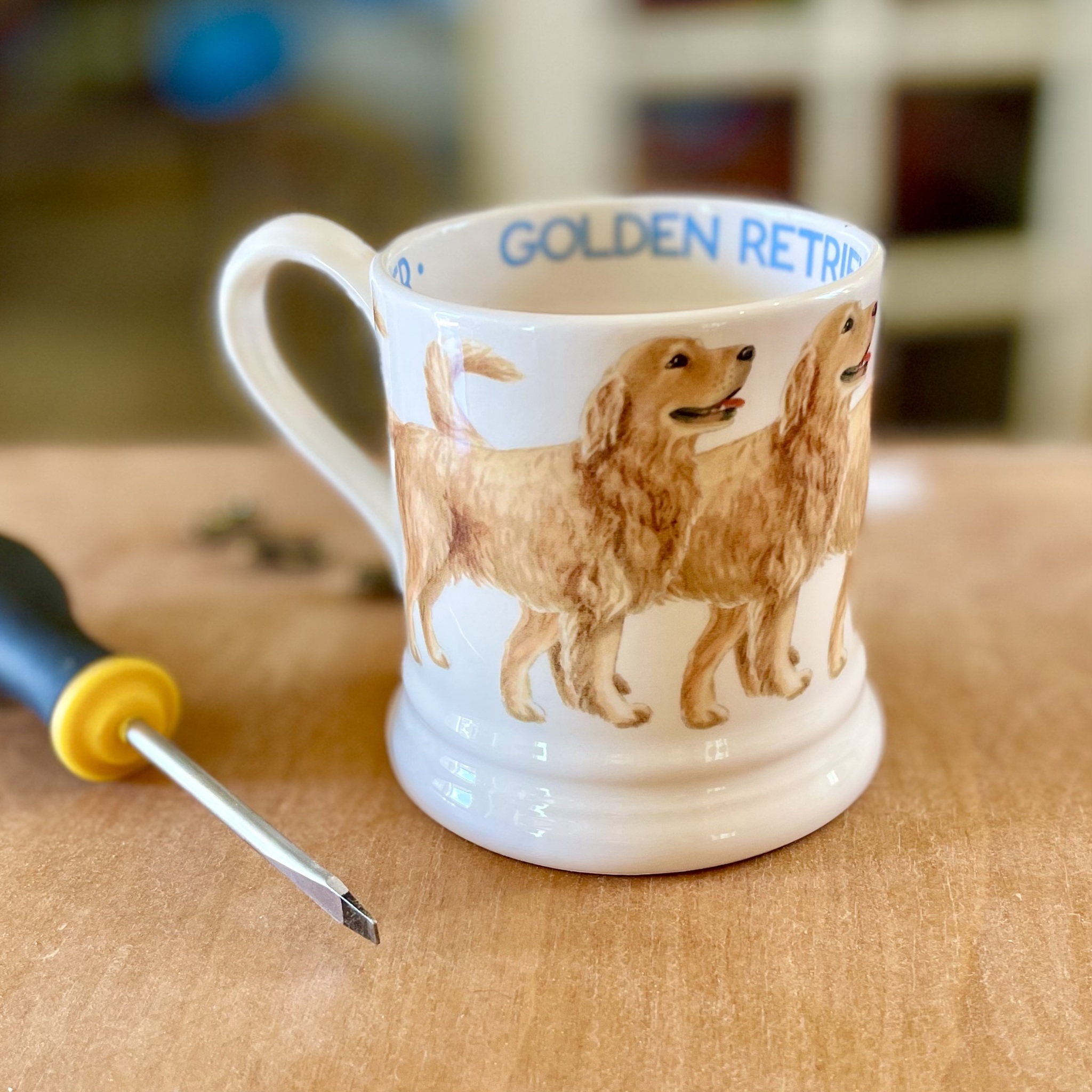 En alldeles underbar porslinsmugg av absolut högsta kvalitet i design av Emma Bridgewater. Mönster ?Golden retriever?, perfekt för hundälskaren. Höjd 9,5 cm. Tål maskindisk och micro.
