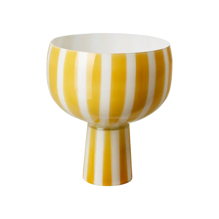 Gul är kul! Som en riktig liten godisbit är denna skål av munblåst glas på fot som passar utmärkt i din påskdukning men som helst står framme året om. Handdisk. Diameter 7/17 cm, höjd 19 cm.