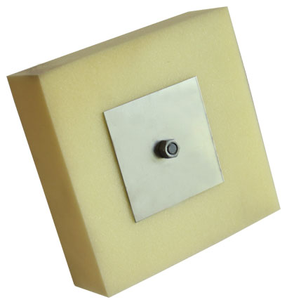 Skumgummikudde 200x200mm som används vid glidgjutning. Komplett med ögla och stålplåt i botten av kudden som gör att man kan reglera kuddens motstånd i kanalen.