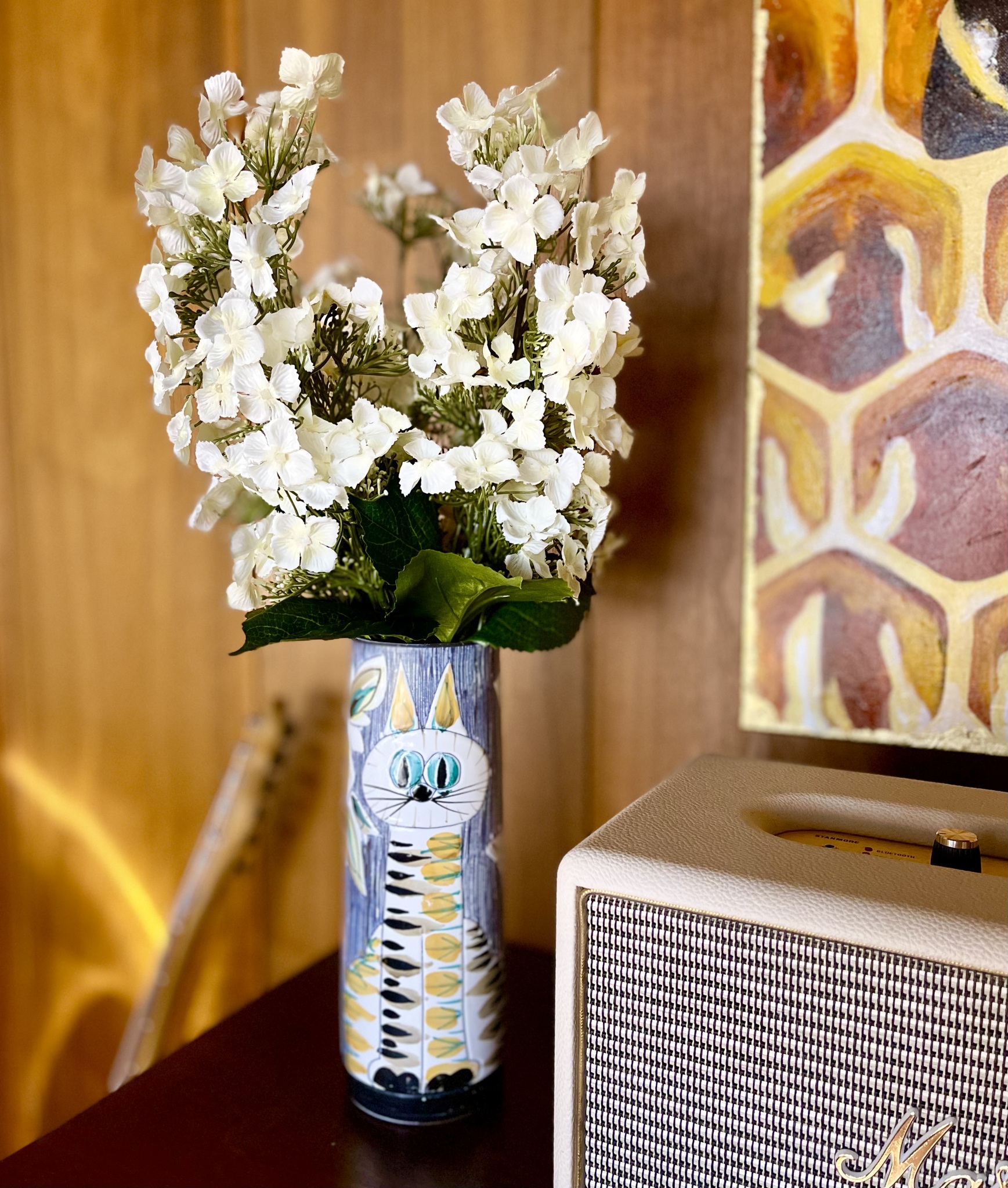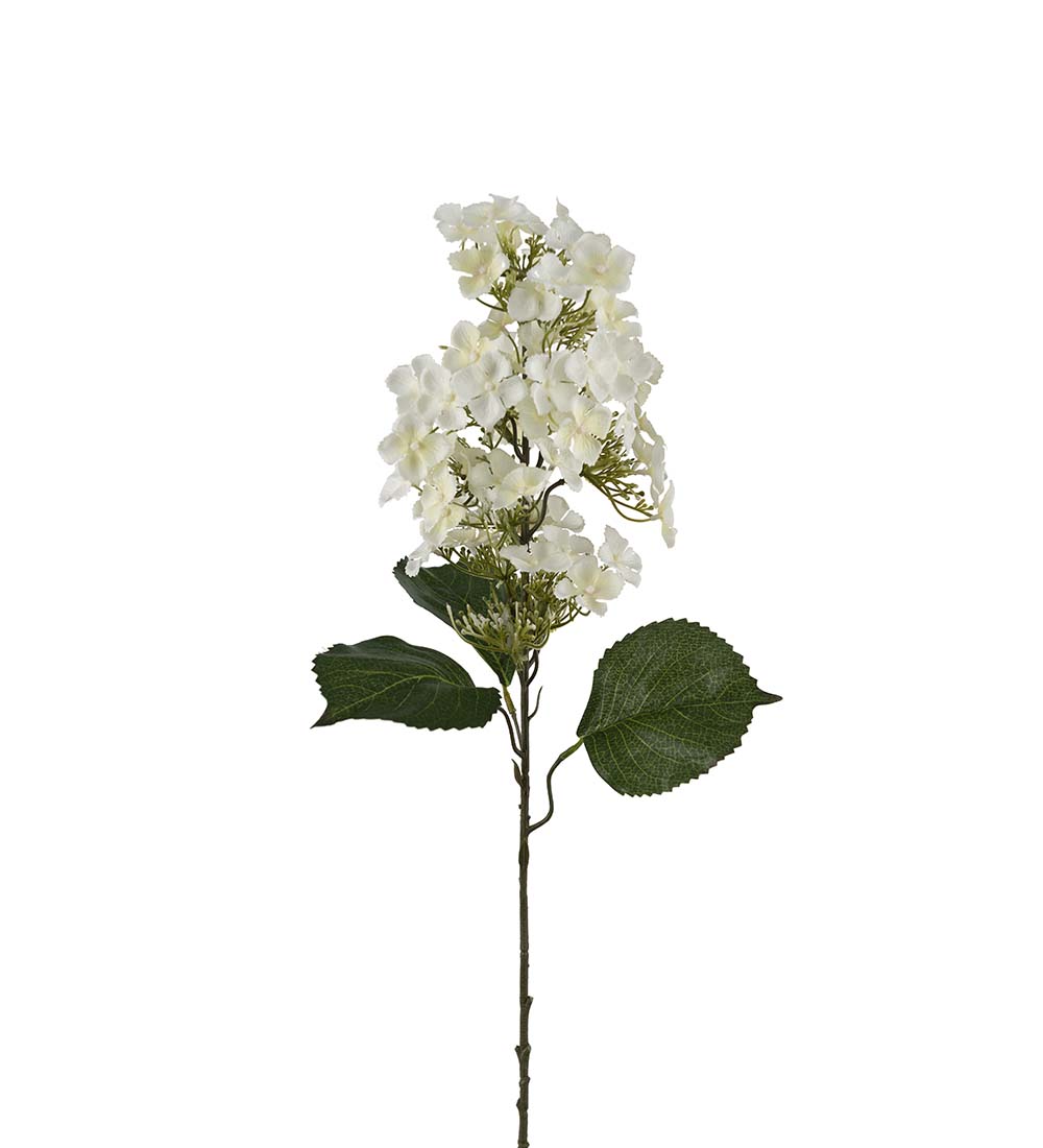 Konstgjord vit syrénhortensia av absolut högsta kvalitet. Buketten på andra och tredje bilden innehåller tre stycken kvistar. Bör ej placeras i direkt solljus då produkten saknar UV-skydd och kan blekas. Höjd 80 cm.